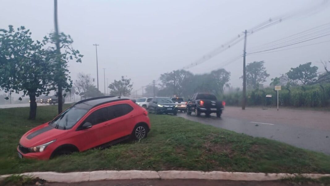 O temporal que atingiu Campo Grande no início da tarde desta quinta-feira (4) alagou ruas, derrubou árvores e mudou totalmente o clima. Em menos de duas horas, a temperatura que estava em 32,9°C despencou para 23°C, com sensação térmica de 17°C.