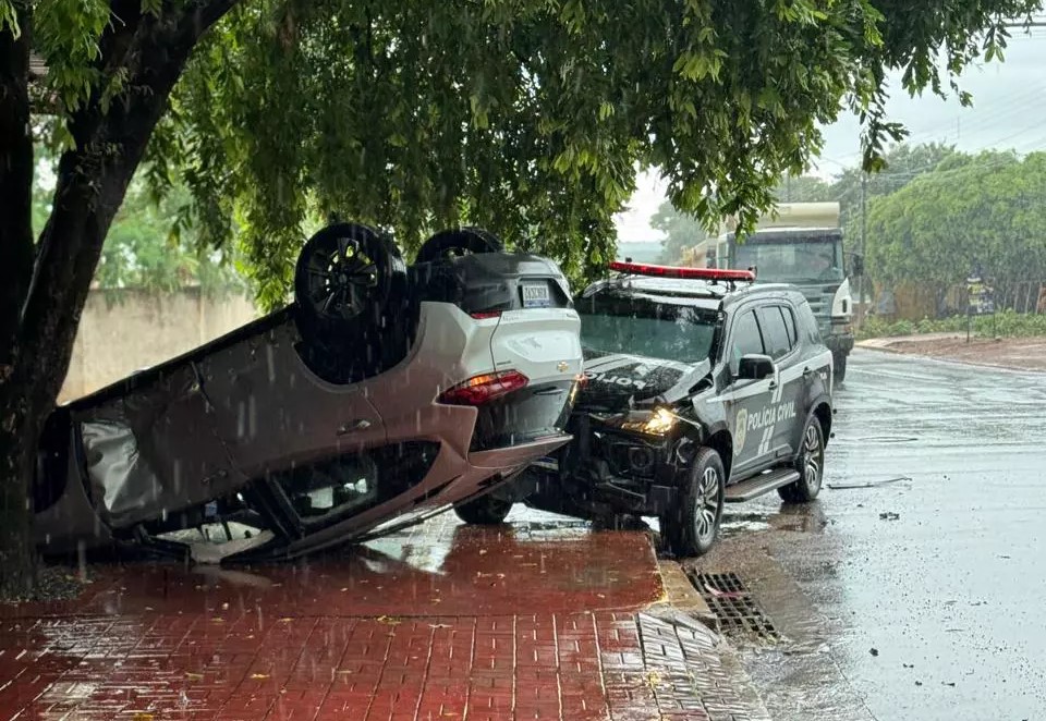 Um motorista furou a preferencial e colidiu com uma viatura da Polícia Civil, resultando no capotamento do Chevrolet Tracker que ele conduzia, na manhã desta sexta-feira (12), na cidade de Bonito, localizada a 297 km de Campo Grande.