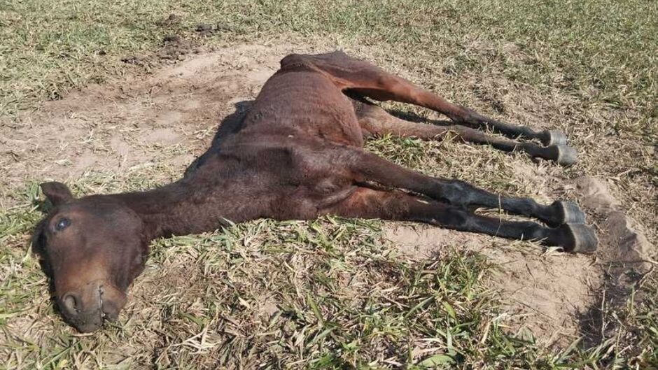Ao chegar ao local, a equipe encontrou um cavalo adulto morto. O proprietário da fazenda informou que havia aplicado um remédio, mas reconheceu que não havia procurado assistência veterinária especializada para tratar o animal corretamente.