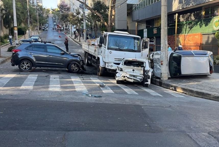 Por volta de 7h45 desta terça-feira (6), um motorista de caminhão perdeu o controle do veículo e arrastou quatro carros na esquina da Avenida Professor Mário Werneck, no bairro Buritis, em Belo Horizonte. Felizmente não houve feridos. Segundo o Corpo de Bombeiros, o motorista teria perdido os freios, levando ao acidente.