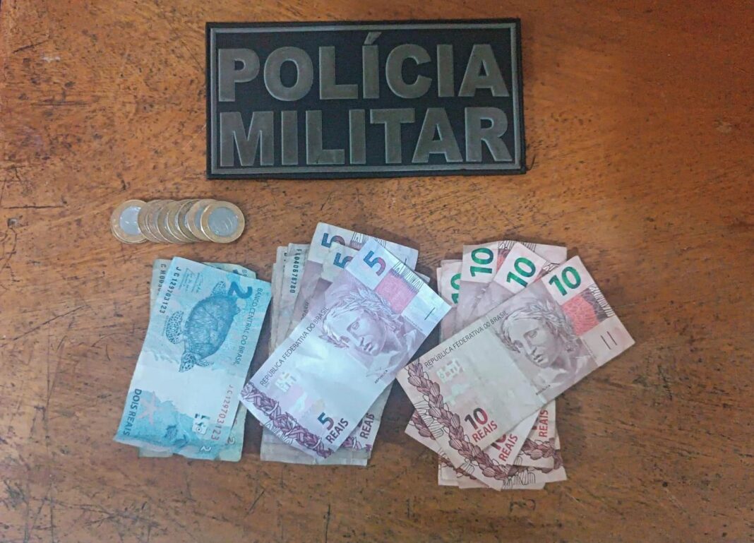 O suspeito foi imediatamente abordado e, durante a busca pessoal, os policiais encontraram R$ 136,00 em cédulas e R$ 10,00 em moedas no bolso de sua calça. O homem confessou ter acabado de furtar o dinheiro do caixa da sorveteria após arrombar a porta com um pé de cabra.