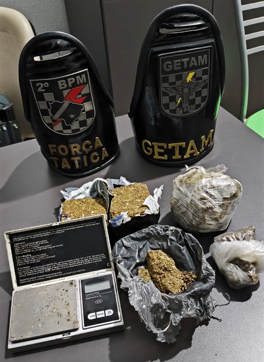 A ação ocorreu por volta das 18h, durante o atendimento a uma ocorrência de perturbação do sossego. Durante a abordagem, os policiais realizaram uma busca pessoal e localizaram 47 gramas de maconha com o suspeito.