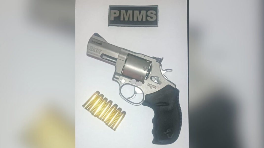 Durante a vistoria no interior do veículo, os policiais encontraram um revólver da marca Taurus, calibre .357, com sete munições do mesmo calibre.