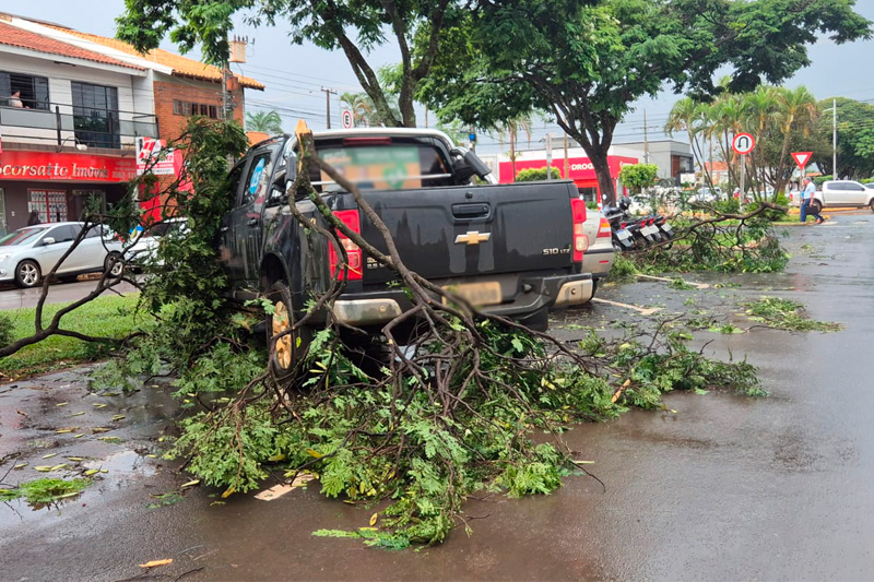 Uma forte chuva caiu sobre a cidade de Chapadão do Sul, acompanhada de rajadas fortes de vento, o que causou queda de galhos de árvores, de uma palmeira com mais de 35 anos e o mais grave, o telhado de um prédio comercial se desprendeu, caiu em uma avenida e causou danos em veículos. A palmeira era do canteiro central da Avenida Onze e felizmente ela caiu no sentido do canteiro e não danificou veículos e não feriu ninguém.
