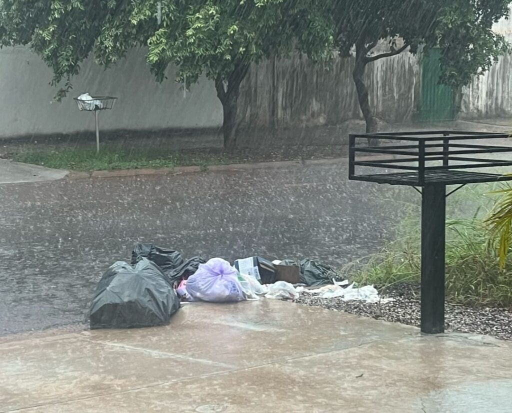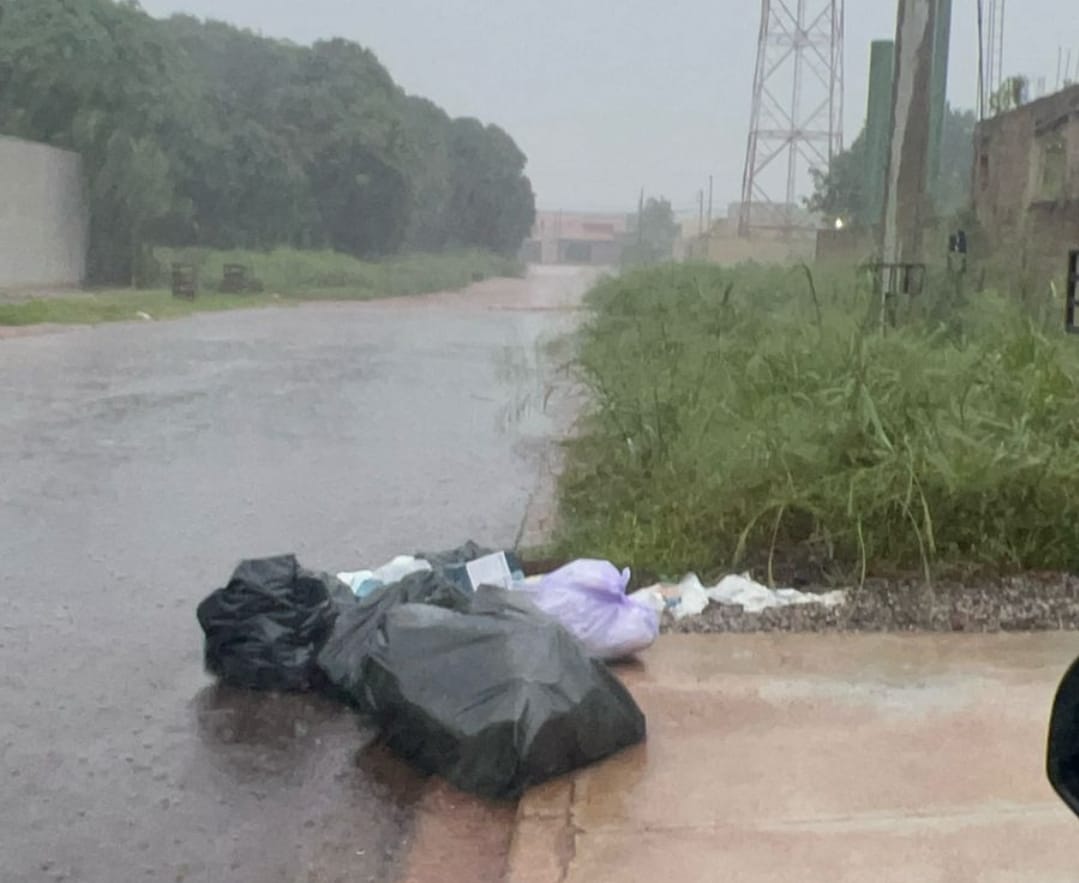 O relato da moradora chegou à redação do Perfil News na tarde de ontem, quinta-feira (24), e os sacos de lixo foram descartados na lixeira na quarta-feira (23). Durante esse tempo os coletores passaram e retiraram o lixo de toda vizinhança, depositando em um só local. Porém não foram recolhidos e a forte chuva que atingiu a cidade espalhou os sacos plásticos pela via pública.