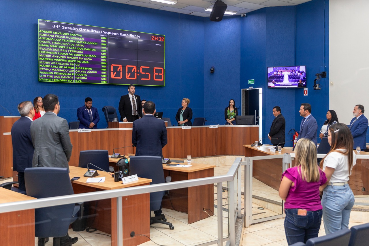 Durante a manhã desta terça-feira (10), os vereadores se reuniram para realizar a 34ª sessão ordinária de 2025. Na pauta, foram analisadas 30 matérias, sendo aprovados cinco projetos de leis (PLs), um projeto de resolução e 20 decretos legislativos. Estes, concedendo reconhecimento para pessoas que se destacaram em suas atuações em prol do desenvolvimento da cidade.