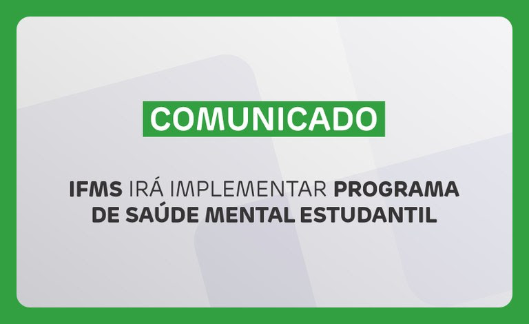- Programa Institucional de Saúde Mental dos Estudantes do IFMS: com diretrizes, linhas de atuação, ações permanentes e estratégias de monitoramento;