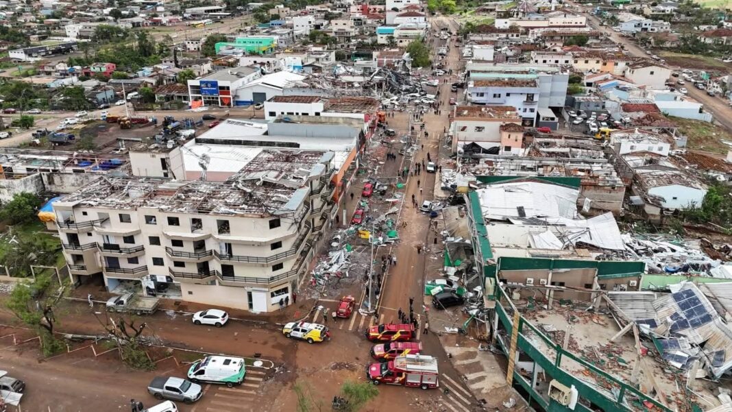 As novas imagens aéreas, captadas por drones, revelam um cenário de destruição total: casas arrancadas do chão, veículos arremessados a metros de distância, árvores retorcidas e bairros inteiros reduzidos a escombros. Estima-se que 90% das residências e comércios de Rio Bonito do Iguaçu tenham sido destruídos.