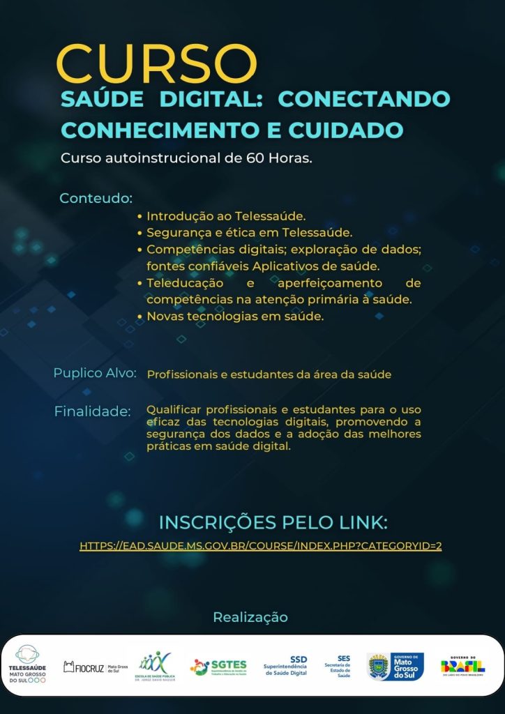 O curso foi desenvolvido de forma conjunta pelo Núcleo de Telessaúde e pela Fiocruz MS, em parceria com a Escola de Saúde Pública Dr. Jorge David Nasser e está disponível clicando aqui.