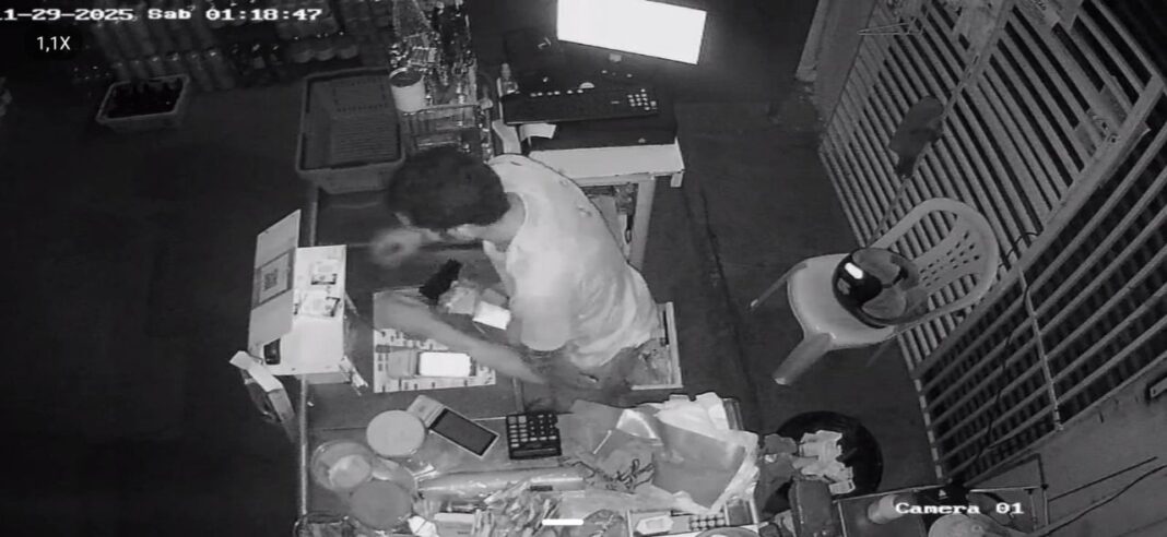 De acordo com as investigações, o autor participou do furto ocorrido em uma conveniência e casa de carnes na região central da cidade, onde foram subtraídos alimentos, bebidas, chinelos e dinheiro, após o rompimento da parede dos fundos do estabelecimento.
