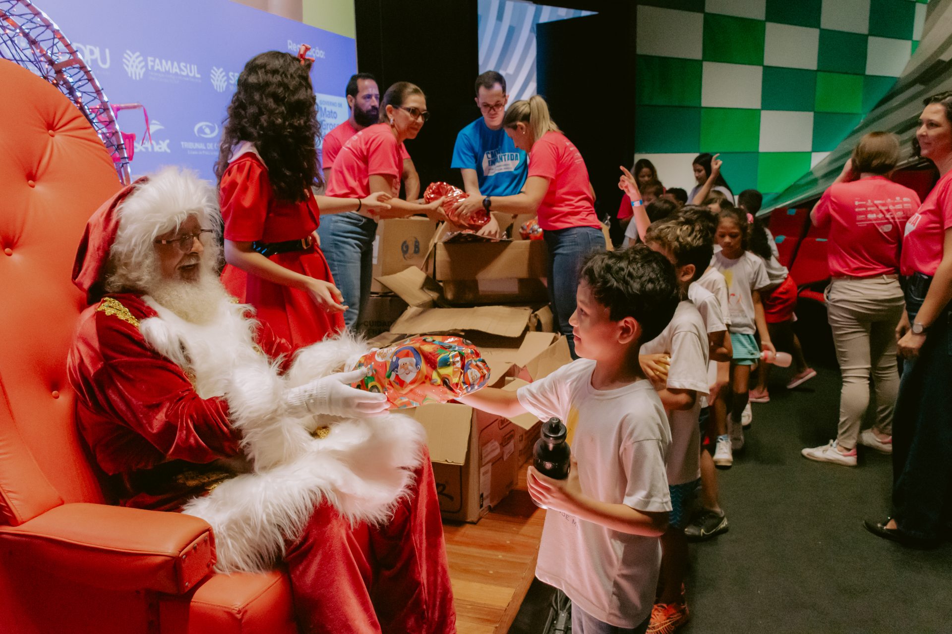 Para encerrar com chave de ouro, a campanha “Caixa Encantada” reuniu mais de 200 crianças no Bioparque Pantanal. Elas foram contempladas com uma série de atividades lúdicas, com música, teatro, fantoches e visita ao aquário. O ponto principal foi a chegada do Papai Noel, iniciando a entrega dos presentes arrecadados.