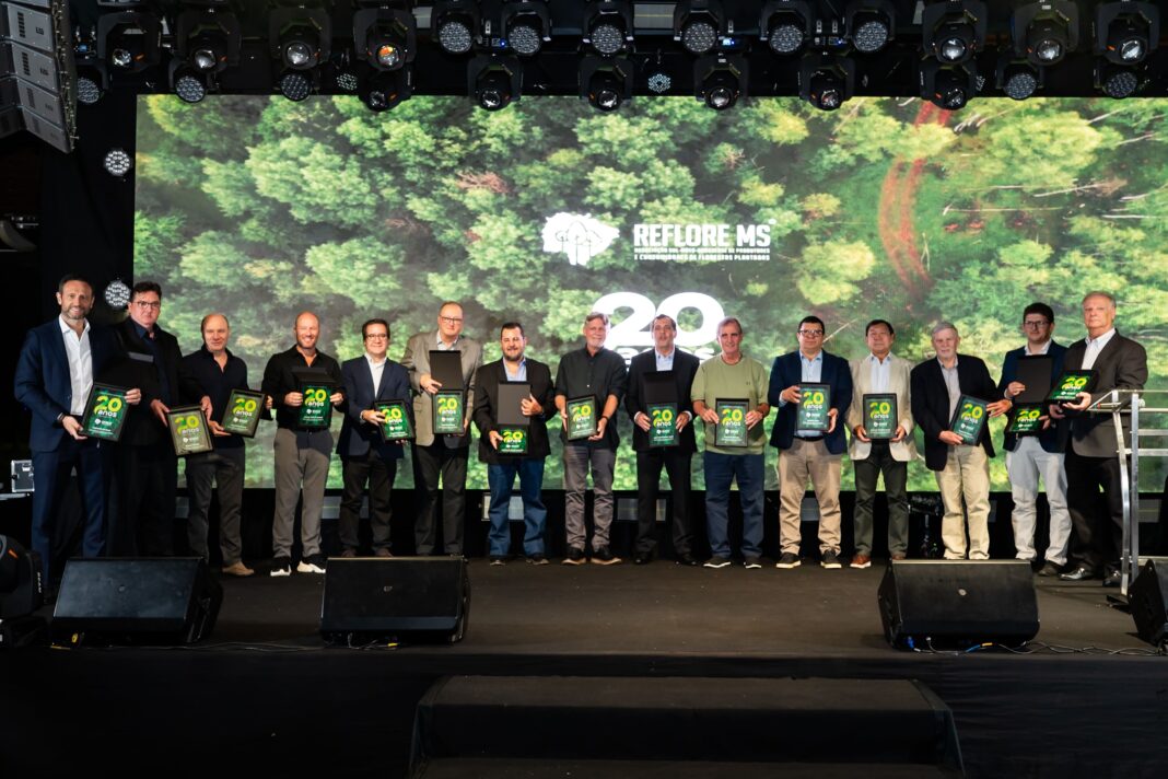 As homenagens foram um dos pontos altos da celebração e destacaram pessoas e empresas que contribuíram de maneira decisiva para a consolidação do setor. Entre elas estiveram Leonardo De Zorzi e Giovani Nezello, da Primer Timber; Joarez Antonio Santim e Ivan Carlos Santim, da Maseal; Júlio Cesar Ohlson, Miguel Tadeu Cadini e Leonardo Bertola, da International Paper; além de Marcilio Mascarenhas Baioni e Ricardo de Almeida Delvalhes, da Delb Indústria. O Grupo Ramires também foi reconhecido por sua trajetória, representado por Luiz Calvo Ramires e Deodato Costa, assim como a Vetorial Siderurgia, cujo diretor Gustavo Trindade Correa teve sua homenagem recebida por Mario Cleiro de Souza. O consultor Manoel de Freitas, referência na área florestal, também foi lembrado, assim como o próprio diretor-executivo da Reflore/MS, Benedito Mário Lázaro, o Dito Mario, que recebeu sua homenagem das mãos dos filhos, em uma cena que comoveu o público.
