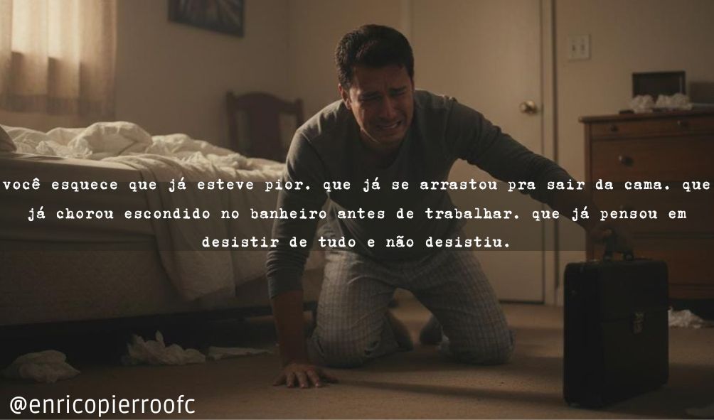 É importante lembrar disso. Principalmente nos dias em que você se cobra demais. Nos dias em que acha que não está fazendo o suficiente, que não está indo bem, que está ficando para trás. Você esquece que já esteve pior. Que já se arrastou para sair da cama. Que já chorou escondido no banheiro antes de trabalhar. Que já pensou em desistir de tudo e não desistiu.