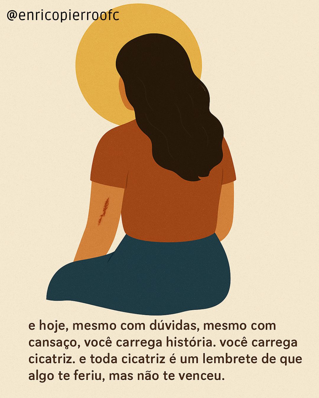 Você atravessou noites que pareciam intermináveis. Enfrentou verdades que ninguém quis ouvir. Se reergueu de situações que te desmontaram. E hoje, mesmo com dúvidas, mesmo com cansaço, você carrega história. Você carrega cicatriz. E toda cicatriz é um lembrete de que algo te feriu, mas não te venceu.