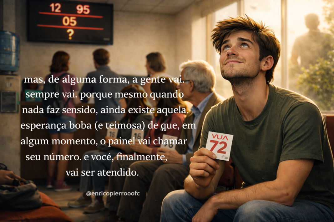 Mas, de alguma forma, a gente vai. Sempre vai. Porque, mesmo quando nada faz sentido, ainda existe aquela esperança boba (e teimosa) de que, em algum momento, o painel vai chamar seu número. E você, finalmente, vai ser atendido.