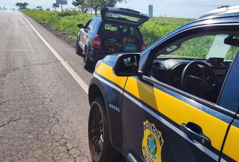 Em abordagem a um Hyundai/Tucson, na BR-267, os policiais encontraram 165 quilos de maconha e 20 quilos de skunk no porta malas do veículo.
