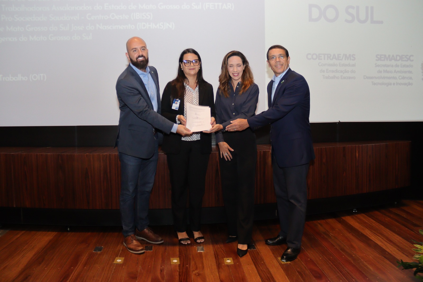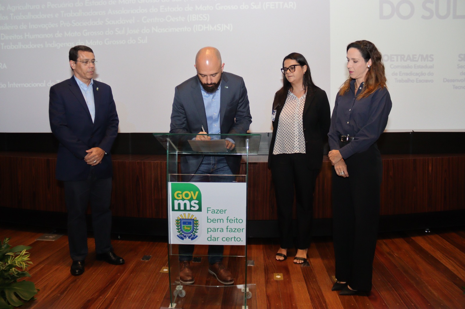 O evento contou com a presença do secretário-adjunto da Semadesc, Artur Falcette; da procuradora-chefe do Ministério Público do Trabalho em Mato Grosso do Sul (MPT-MS), Cândice Arosio; do secretário-executivo de Qualificação Profissional e Trabalho, Esaú Aguiar; da coordenadora da Comissão Estadual para a Erradicação do Trabalho Escravo (Coetrae-MS), Janaína Carlin; além de representantes de instituições parceiras e da sociedade civil.