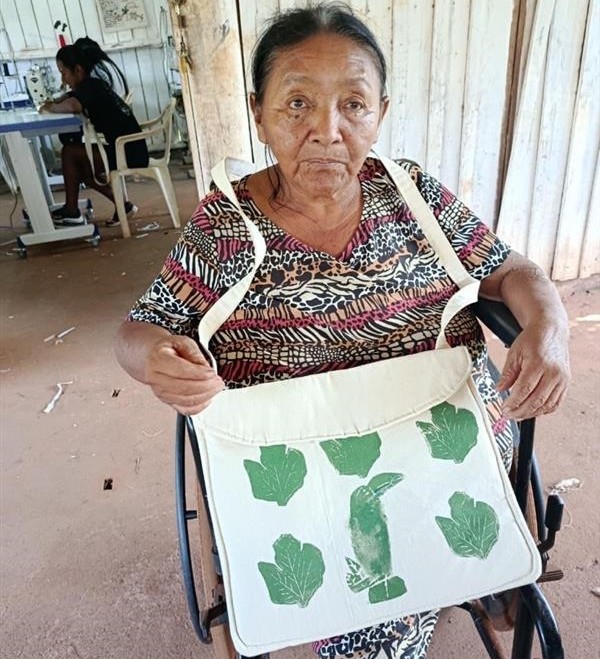 Ecobags, bolsas, almofadas, toalhas e caminhos de mesa são alguns dos produtos artesanais confeccionados por famílias da comunidade indígena Ofaié, em Brasilândia, que, até o mês de abril, participam de uma formação em costura criativa desenvolvida pelo Programa de Relacionamento da Suzano em parceria com o SENAI e SEBRAE. Além de expressarem elementos tradicionais e refletirem a criatividade e identidade cultural da comunidade, as peças confeccionadas representam novas oportunidades de renda sustentável para as artesãs participantes.