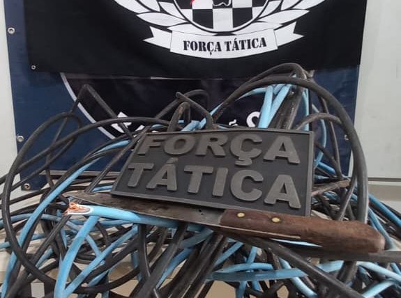 Ante os fatos após ser dada voz de prisão o detido (de 26 anos) foi encaminhado até a Delegacia de Polícia, onde foi apresentado juntamente com os fios recuperados e uma faca que se encontrava em sua posse.