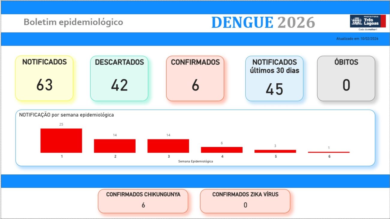 A Prefeitura de Três Lagoas, por meio do setor de Vigilância Epidemiológica da Secretaria Municipal de Saúde (SMS), divulga o Boletim Dengue.