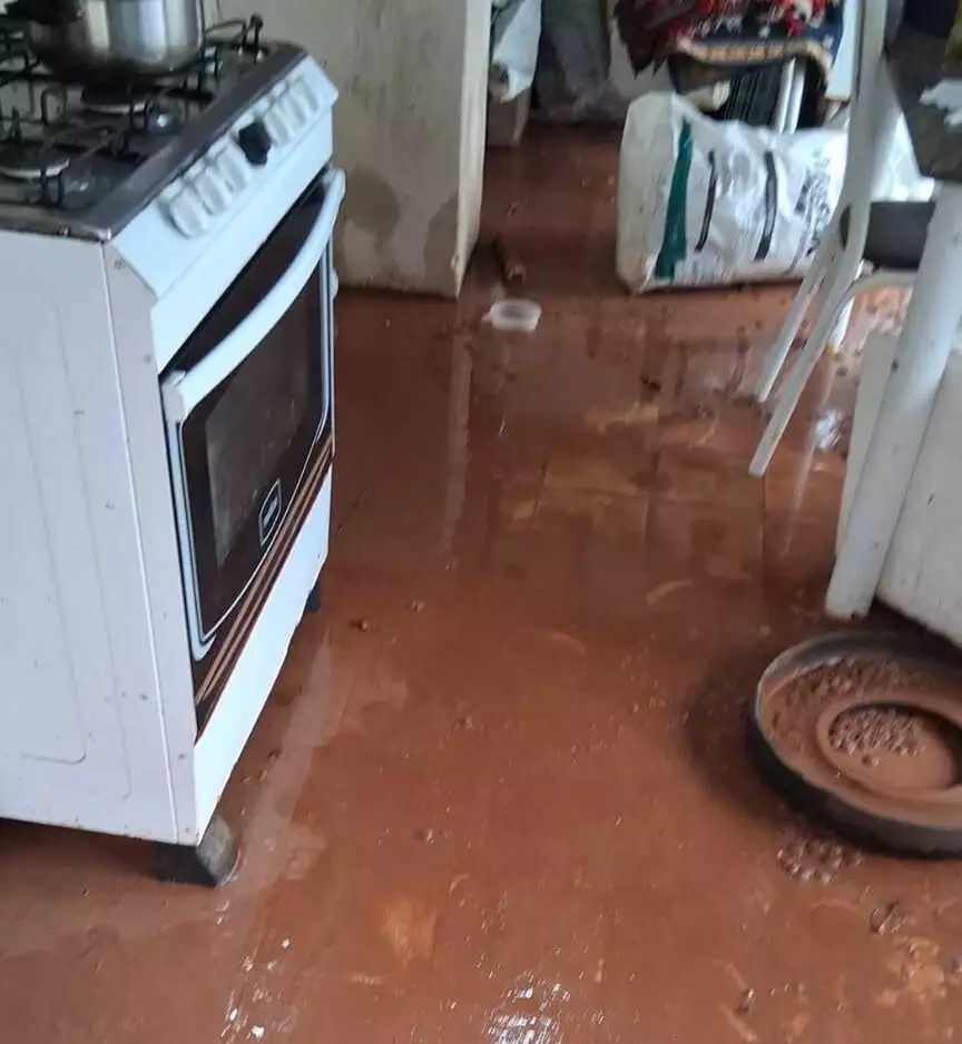 Em vídeo divulgado nas redes sociais, um homem mostra a casa completamente alagada e um salão de beleza invadido pela água, na região central. Indignado, ele desabafa: “É difícil, obrigada por tudo, presentão de 2026″, lamenta.
