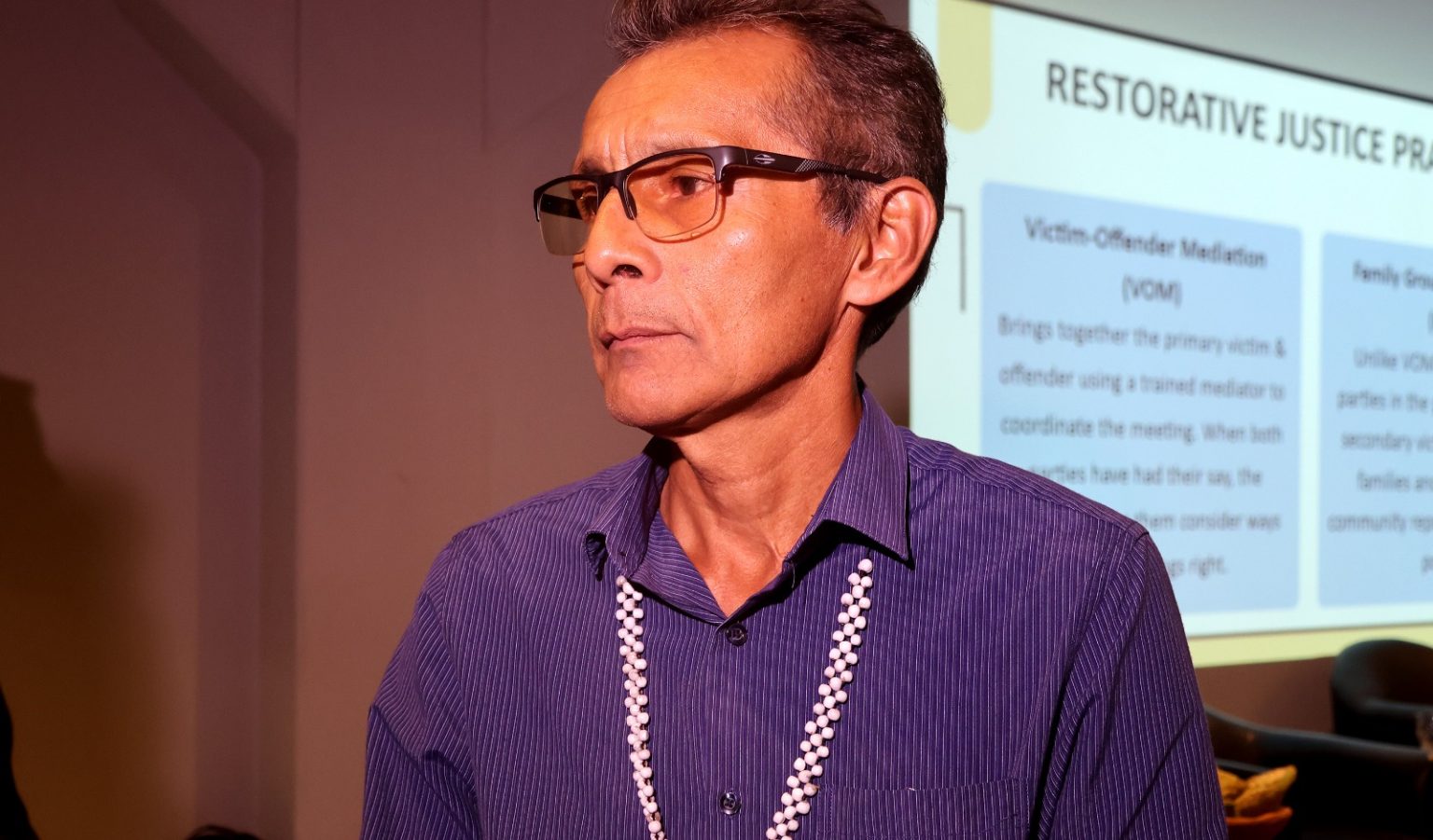 Entre os palestrantes esteve o pesquisador canadense Dr. Nicholas Jones, que compartilhou sua experiência e pesquisas nas áreas de Justiça Restaurativa, policiamento, genocídio e criminologia. Para ele, o apoio e o reconhecimento institucional são fundamentais para o avanço da política. “Quando o governo implementa projetos como esse e promove esse tipo de reconhecimento, espera-se colher bons frutos no futuro — frutos relacionados à aproximação entre as comunidades, à melhoria da governança, à valorização da condição humana e ao fortalecimento da empatia entre os povos”, afirmou o pesquisador, que também é professor de Estudos de Justiça na Universidade de Regina, no Canadá.