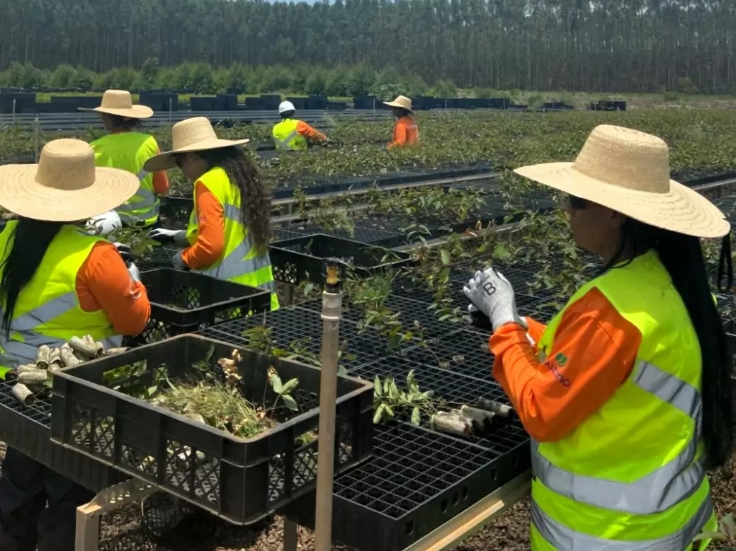 Com o início da operação da fábrica de Ribas do Rio Pardo em 2024, a Suzano qualificou e contratou 240 profissionais para atuar no novo viveiro de mudas da região, considerado um dos mais modernos do mundo. Desse total, 85% são mulheres moradoras do município, que passaram por capacitação específica incluída nas mais de 22 mil horas de treinamentos oferecidas no período para as áreas florestais e industriais.