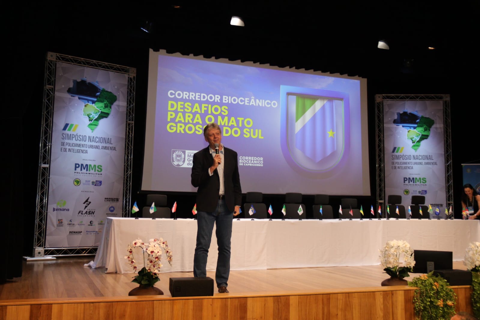 O Corredor Bioceânico “Desafios para o Mato Grosso do Sul” foi o tema da palestra do secretário da Semadesc Jaime Verruck no dia de hoje (20) durante o Simpósio Nacional de Policiamento Urbano, Ambiental e de Inteligência, no Senac Hub Academy, em Campo Grande. O evento da Polícia Militar de MS reuniu comandantes, especialistas e gestores das Polícias Militares de todo o país para debater inovação, integração e aperfeiçoamento das ações de segurança pública.