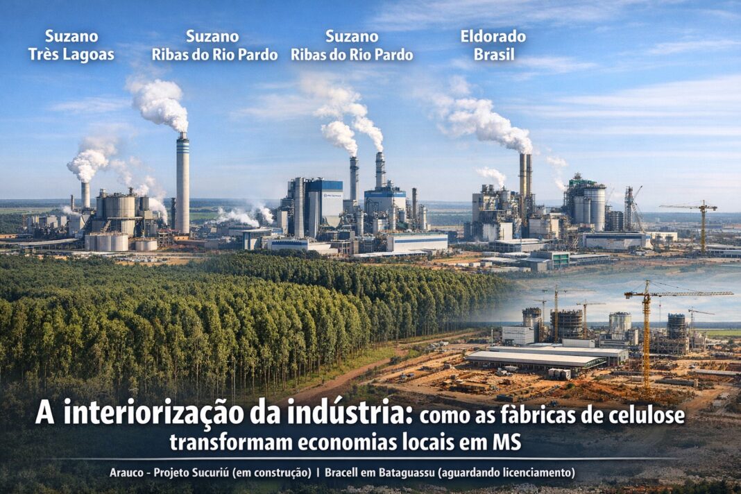 A interiorização da indústria brasileira ganhou um novo capítulo nos últimos anos com a consolidação do chamado “Vale da Celulose” em Mato Grosso do Sul. Longe dos grandes centros industriais tradicionais, municípios do interior passaram a receber investimentos bilionários, redesenhando suas economias e colocando o Estado no centro da produção global de celulose.
