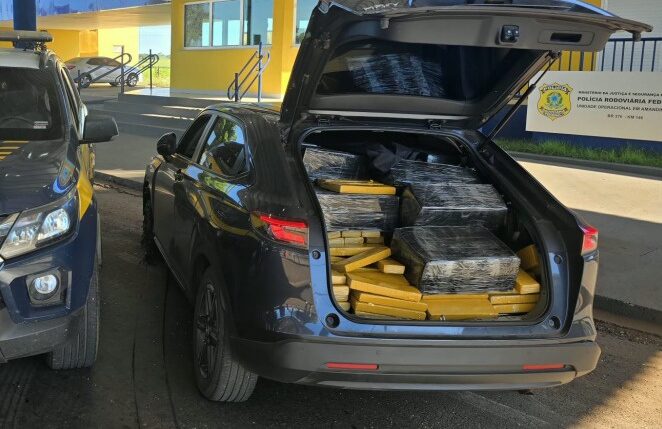 A Polícia Rodoviária Federal (PRF) apreendeu 1.273 quilos de maconha e recuperou um veículo, nesta segunda-feira (6), em Ivinhema (MS).