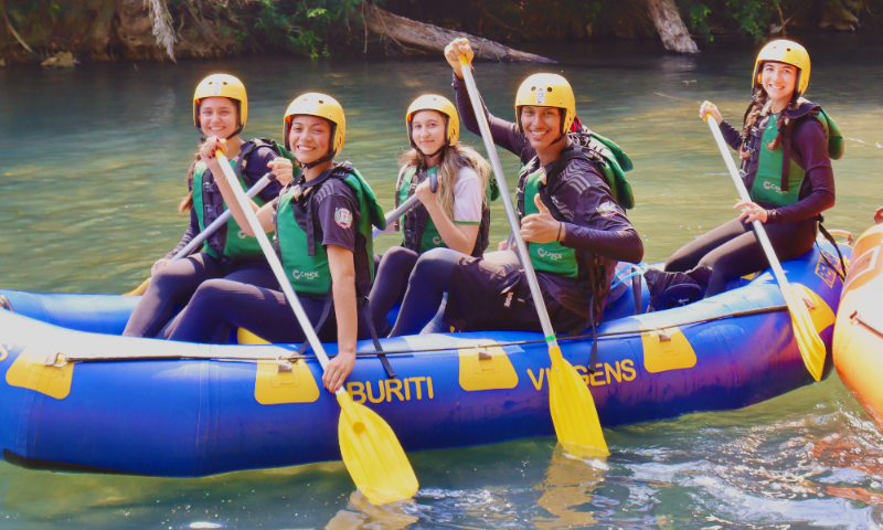 - Vivências em atividades de aventura – experiências práticas em modalidades como rapel, escalada, boia cross, rafting e stand up paddle, realizadas em ambientes naturais de Aquidauana, oportunizando a integração entre teoria e prática;