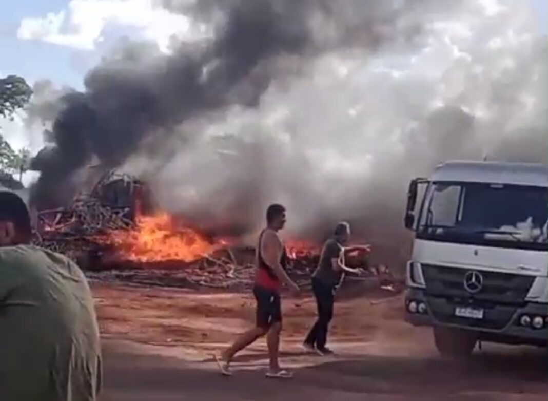 Um incêndio de grandes proporções atinge, neste momento, um imóvel localizado no bairro Jardim Boa Esperança, na Rua Santa Catarina, em Inocência (MS). As chamas, que se elevaram a vários metros de altura, podem ser vistas a quilômetros de distância, acompanhadas por uma intensa fumaça que toma conta da região.