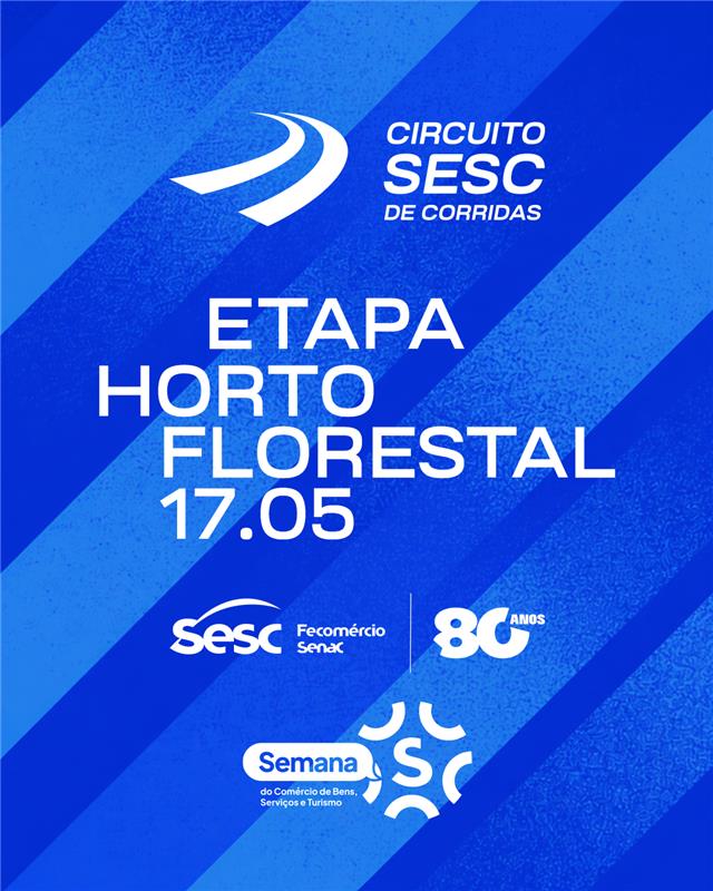 A etapa do Circuito Sesc de Corrida integra a programação da Semana S e faz parte das comemorações dos 80 anos do Sesc, com esporte, saúde e participação coletiva.