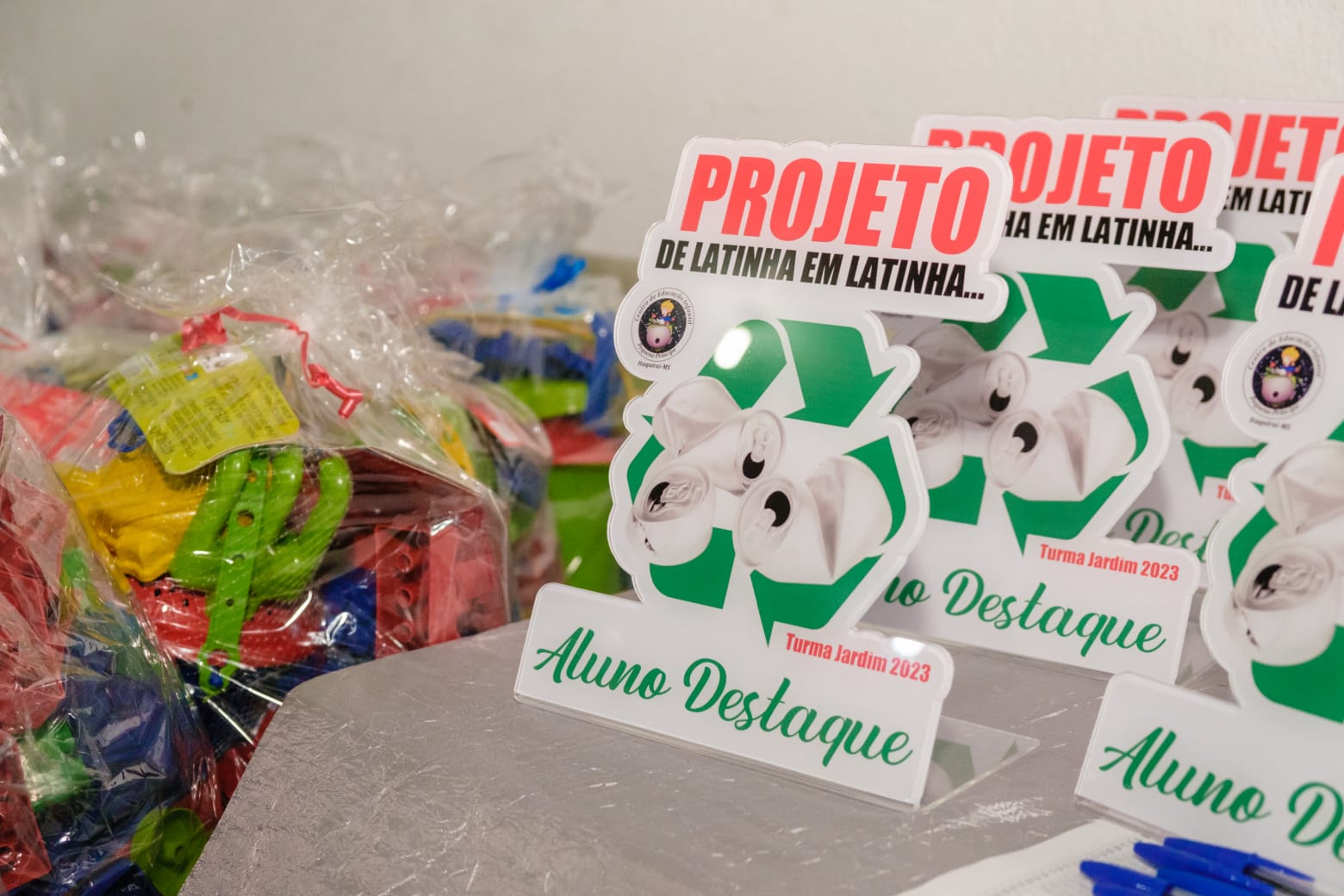 Em 2025, a gestora participou de uma capacitação sobre sustentabilidade, finanças e saúde. O aprendizado no treinamento, Aldaci aplicou no projeto “De Latinha em Latinha”, já executado na escola. A iniciativa passou a envolver, então, a direção escolar, professores, estudantes, além de empreendedores da comunidade que atuavam com materiais recicláveis.