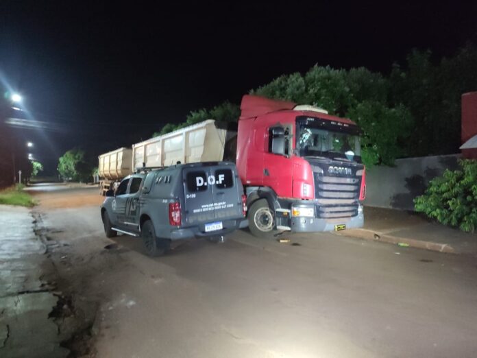 Policiais Militares do DOF (Departamento de Operações de Fronteira) recuperaram na noite desta quinta-feira (11), um cavalo trator Scania de cor vermelha acoplado a um semirreboque com os sinais identificadores danificados e indícios de adulteração.
