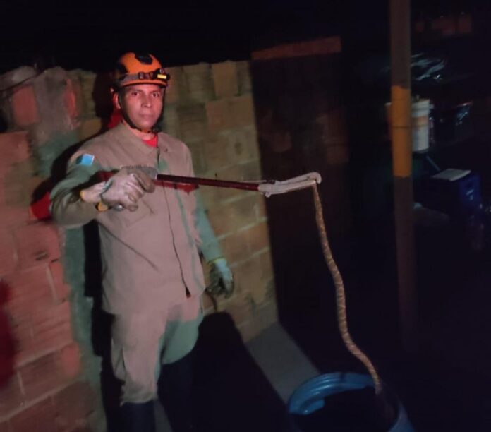 O morador pediu socorro ao Corpo de Bombeiros que foi até o imóvel e com o auxílio de uma pinça para capturar cobras, o animal foi resgatado e devolvido à natureza em uma área rural momentos depois.