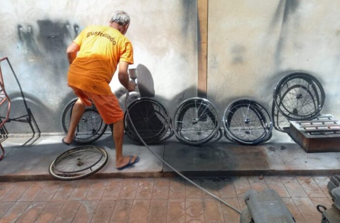 Sucatas de cadeiras de rodas estão sendo reformadas no EPA (Estabelecimento Penal de Aquidauana) para serem doadas a quem precisa, iniciativa inovadora que une ressocialização e assistência à população carente, a exemplo de várias outras ações realizadas em unidades prisionais da Agepen (Agência Estadual da Administração do Sistema Penitenciário) em Mato Grosso do Sul, com retribuição direta à sociedade e ocupação produtiva da mão de obra carcerária.