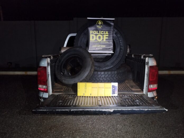 Policiais militares do DOF (Departamento de Operações de Fronteira) apreenderam na tarde desta quinta-feira (21) na rodovia BR-463 área rural de Ponta Porã, o equivalente a R$ 95,6 mil em pneus contrabandeados do Paraguai e aparelhos de telefone celular produtos de descaminho.