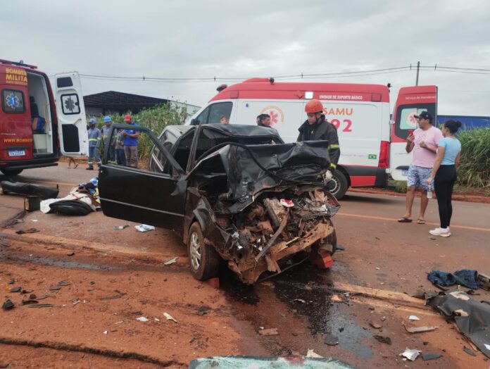Na tarde deste sábado (23), por volta das 14h50, o Corpo de Bombeiros do 5º GBM de Três Lagoas atendeu uma ocorrência de colisão envolvendo um Fiat Uno e um caminhão na BR-262, saída para Campo Grande, nas proximidades da chácara Imperial.
