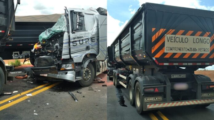Uma idosa de 61 anos morreu na tarde de quarta-feira (10) após um grave acidente de trânsito na MS-306 entre Chapadão do Sul e Costa Rica. Ela era passageira de uma das carretas.