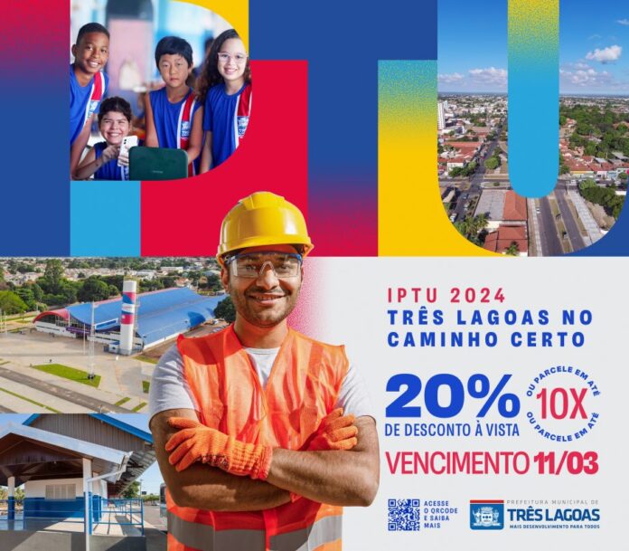 A Prefeitura de Três Lagoas, por meio do Setor de Tributação, comunica a toda a população que o pagamento à vista com 20% de desconto ou da 1ª parcela do IPTU 2024 vence no dia 11 de março.