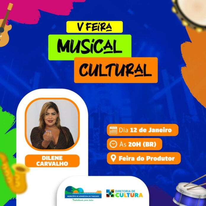 A quinta edição da Feira Musical Cultural de Aparecida do Taboado está em andamento, com apresentações de artistas locais na praça de alimentação da Feira do Produtor.