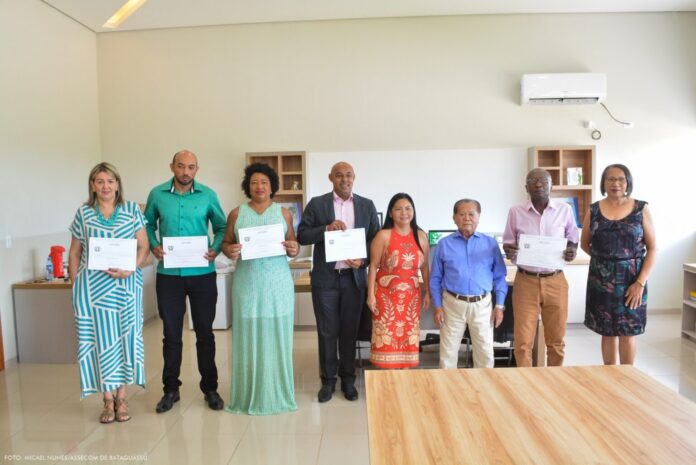 Os cinco novos membros do Conselho Tutelar de Bataguassu eleitos no pleito desenvolvido no dia 1º de outubro de 2023 para o quadriênio 2024-2028 tomaram posse nesta quarta-feira, dia 10 de janeiro. A cerimônia foi realizada no gabinete municipal, com a presença do prefeito de Bataguassu, Akira Otsubo (MDB), conselheiros eleitos, suplentes e familiares.