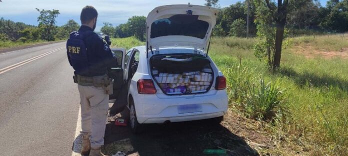 A Polícia Rodoviária Federal (PRF) apreendeu 666 Kg de maconha, 13 Kg de skunk e 981 gramas de haxixe, na manhã desta quarta-feira (10), em Ribas do Rio Pardo. O motorista do veículo, um VW/Gol, foi preso em flagrante.