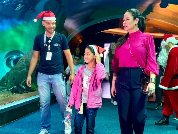 Logo na chegada, Ludmila foi tomada pela emoção ao ser recebida pelo Papai Noel e a diretora-geral Maria Fernanda Balestieri. O momento simbolizou a força da solidariedade e da esperança típicas do Natal. Encantada com os tanques, os peixes e a grandiosidade do espaço, a criança percorreu o complexo com brilho nos olhos e muitos sorrisos.