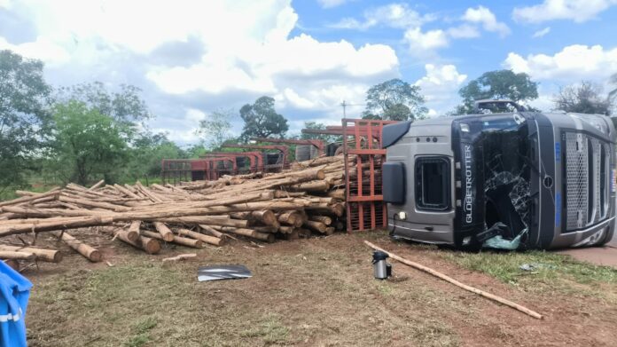 Mais um acidente foi registrado nas rodovias da região na manhã desta quarta-feira (3). Desta vez, uma carreta carregada com eucalipto, pertencente à empresa Perlopes, tombou na Avenida José Francisco da Silva, no anel viário de Brasilândia.