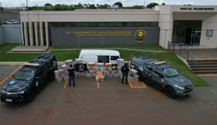 O material apreendido, avaliado em aproximadamente R$ 4,1 milhões, foi encaminhado à Defron, em Dourados.