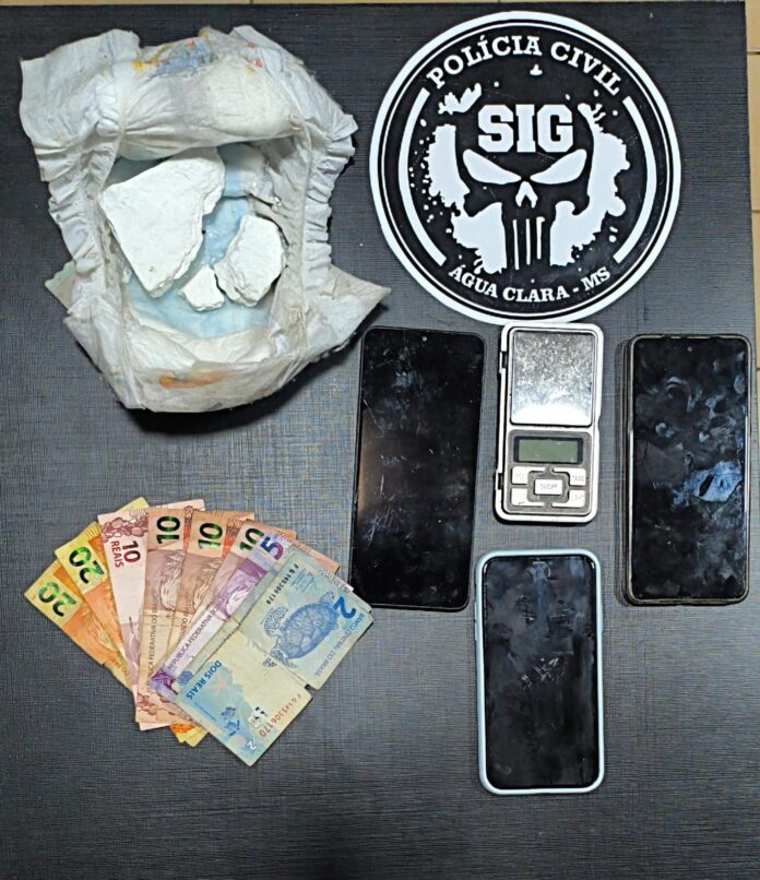 Na noite desta última quinta-feira (6), a Polícia Civil, por intermédio do SIG em conjunto com a PMMS prendeu uma mulher por tráfico de drogas em Água Clara (MS), no bairro Jardim Santos Dumont. A ocorrência teve início após a abordagem de um homem de 30 anos, identificado como H.A.S., flagrado com um pino de cocaína. Ele informou que havia adquirido a droga por intermédio de uma acompanhante, L.A.S., que indicou a verdadeira fornecedora, M.M.M., de 29 anos.