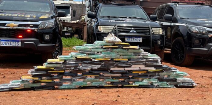 A droga estava acondicionada em bolsas de viagem sobre a carga e teria como destino o município de Sete Lagoas/MG. O veículo havia saído de Corumbá/MS.