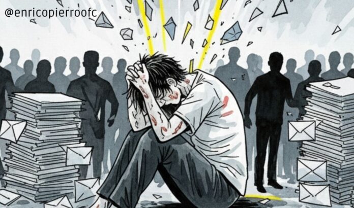O problema é que ninguém ensina a reconhecer os sinais da exaustão. A gente aprende desde cedo a empurrar o cansaço para debaixo do tapete. A se orgulhar de produzir sem parar, de entregar além do limite, de sorrir quando queria sumir. E essa cultura do desempenho vai comendo por dentro. Você começa a funcionar no automático. Vive para cumprir metas, para agradar, para não decepcionar. Até que uma hora quebra. Mas nem aí você para. Só sente mais culpa por não conseguir continuar fingindo que está tudo bem.